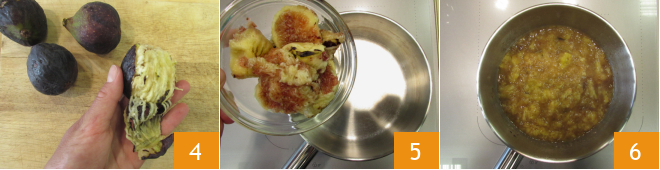 Mientras tanto, pela 200 g de higos 4, colócalos en un cazo 5 y cocina a fuego medio durante unos 5 minutos, removiendo de vez en cuando para que se deshagan completamente 6. Luego retira del fuego y deja enfriar.