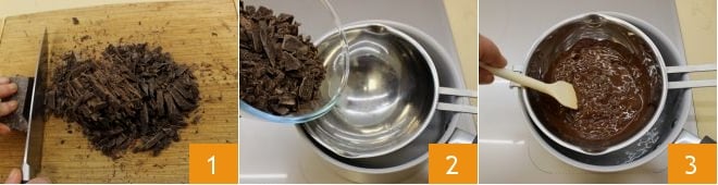 Para preparar la tarta de yogur y chocolate, empieza precisamente por este último: pica el chocolate negro y derrítelo al baño maría 2: es importante que el agua del cazo en el fuego no alcance el fondo del recipiente o del cazo donde se encuentra el chocolate. Remueve de vez en cuando con una cuchara de madera para favorecer que el chocolate se derrita 2. Cuando esté listo, apaga y deja enfriar.