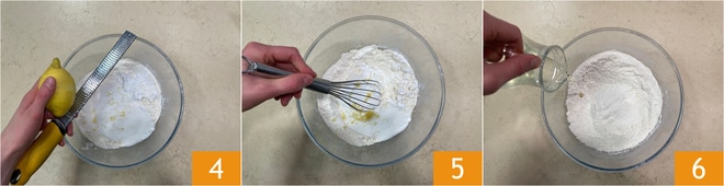 Podéis rallar la cáscara de limón 4 y mezclar 5. Verted el aceite de semillas 6.