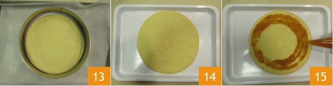 Haced lo mismo con el otro disco 13. Cuando estén completamente frías las bases, pasad a la composición 14. En el disco cerrado, verted la mermelada de albaricoque para esparcir con una cuchara o con manga pastelera 15.