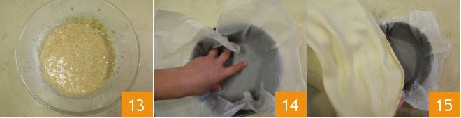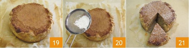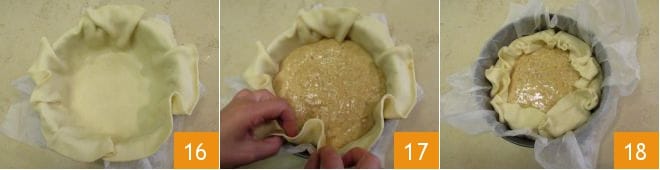 de manera que sobresalga un poco del borde 16. Vierte la mezcla 17 dobla los bordes hacia adentro 17 18 y hornea en horno estático precalentado a 180° durante aproximadamente 60 minutos.