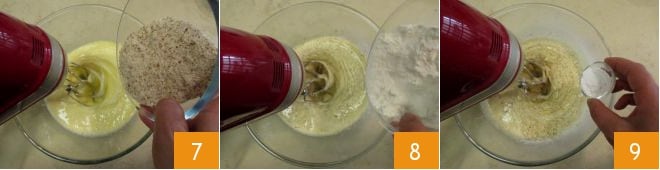 las almendras trituradas y mezcladas con el azúcar 7, la harina 8, la levadura 9,