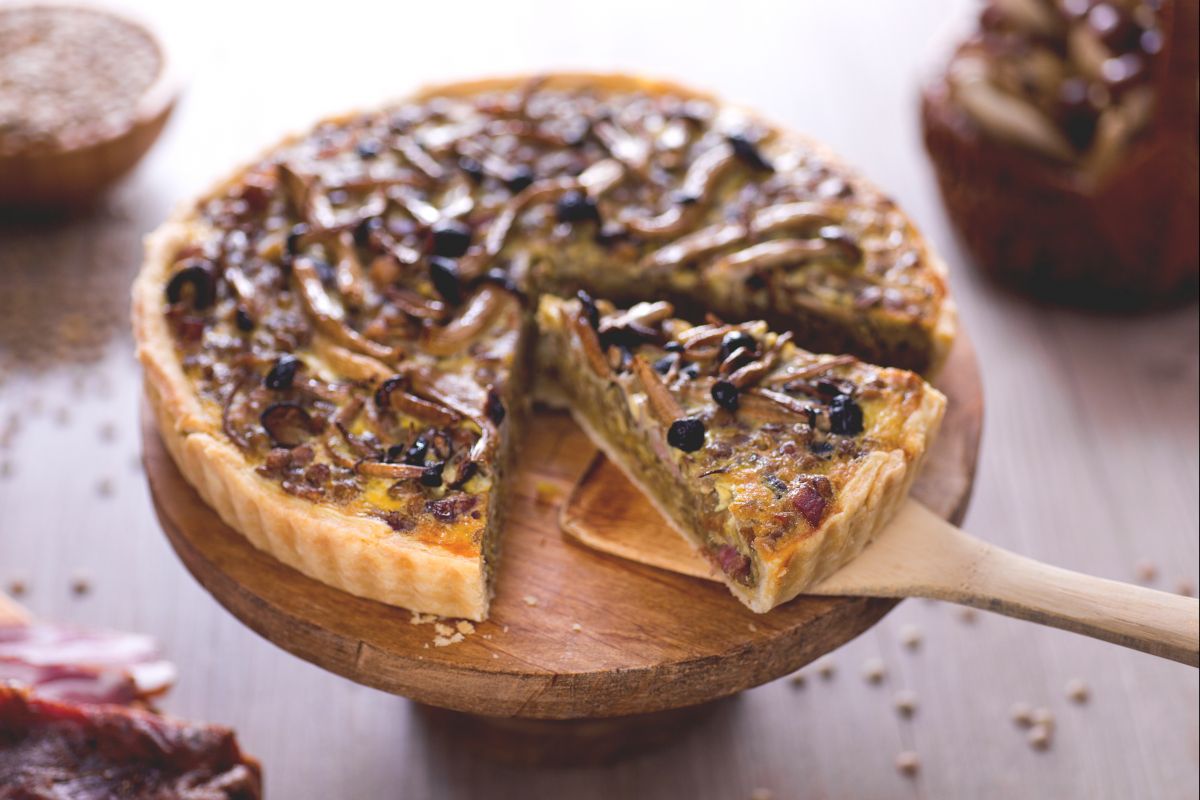 Tarta salada de setas y lentejas