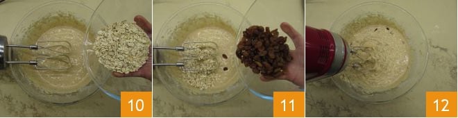 los copos de avena y las pasas 11. Sigue trabajando con las varillas eléctricas hasta que estén bien incorporados 12.