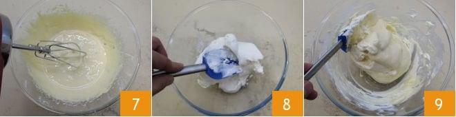 Bate hasta que se enfríe completamente 7. En un bol, suaviza ligeramente el mascarpone con una espátula 8. Añade al mascarpone, poco a poco, las yemas montadas y ya frías, mezclando con una espátula suave, con movimientos de abajo hacia arriba 9.