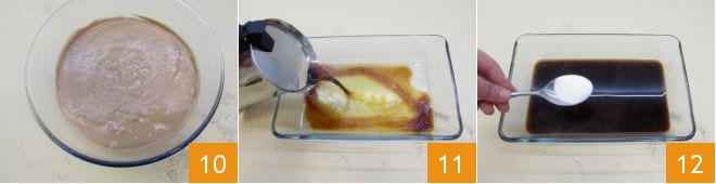 Cuando la crema esté lista 10, colócala en el frigorífico mientras continúas con la preparación. Prepara el café con la moka y viértelo en un recipiente bajo y ancho 11; disuelve el azúcar en su interior 12 (si prefieres puedes omitirlo) y deja enfriar.