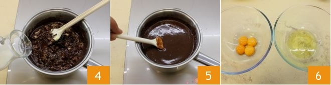 Mezclad con una cuchara de madera y, cuando esté derretido, verted la leche 4. Mezclad nuevamente hasta obtener una salsa espesa y sin grumos 5. Mientras el chocolate se enfría, separad las yemas de las claras 6