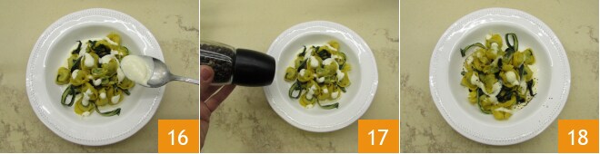 Añadid un poco más de crema 16 y un toque de pimienta 17. Aquí están listos vuestros tortelloni con acelgas y crema de Parmesano 18.