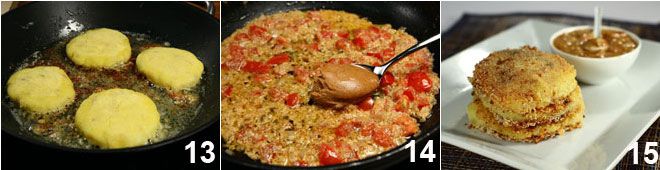 Estas tortitas de patata con salsa de cacahuetes se caracterizan por sabores sudamericanos, muy ricos y sustanciosos; la particularidad de las tortitas de patata con salsa de cacahuetes es la crema misma de acompañamiento que mezcla sabores dulces como el mismo mantequilla de cacahuete y salados como tomates y guindilla.
