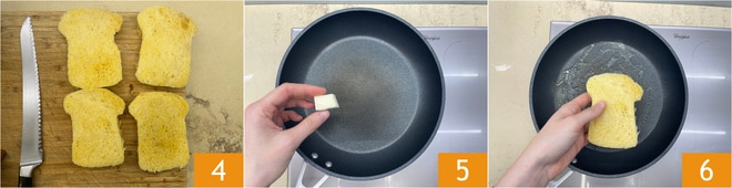 Tendrás un total de 9 rebanadas moldeadas 4. Calienta una sartén antiadherente grande y engrasa con mantequilla 5. Tuesta las rebanadas 6.