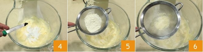 cuando esté homogénea apaga la máquina e incorpora el azúcar glas, abre la vaina de vainilla a lo largo, extrae las semillas y añádelas a la masa 4, tamiza directamente en el recipiente también la harina 00 5 y la de almendras 6,