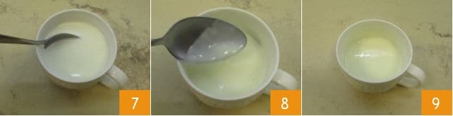 removiendo con una cuchara para obtener una mezcla homogénea y sin grumos 7. En este punto, calentad la taza en el microondas durante unos 2 minutos a 900 W, deteniendo la cocción cada 40 segundos aproximadamente para remover la mezcla. Obtendréis así un compuesto denso y cremoso 8. ¡Disfrutad inmediatamente de vuestro chocolate caliente blanco 9!
