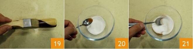 Pincelad los rollos obtenidos con un poco de agua a temperatura ambiente 19. Luego en un bol pequeño unid la canela al azúcar 20 y mezclad los ingredientes 21.