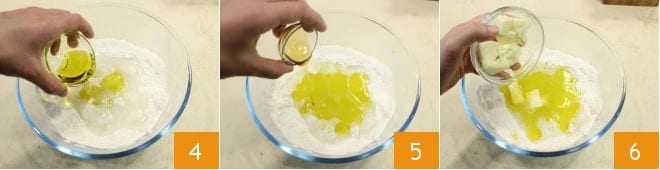 añadir también el aceite 4, la miel 5 y la mantequilla ablandada 6.