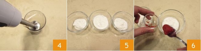 Añade una pizca de sal y bate todo con una batidora de inmersión 4 hasta espesar la mezcla. Divide la salsa así obtenida en 3 cuencos pequeños 5. Deja una al natural (será tu Finta maionese senza uova) y aromatiza las otras dos. En una añade el concentrado de tomate 6,