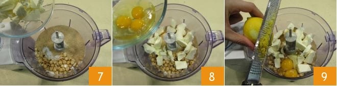 Por último, agregad la mantequilla en trozos 7, los 3 huevos 8 y la ralladura de un limón 9 tomando solo la parte amarilla.