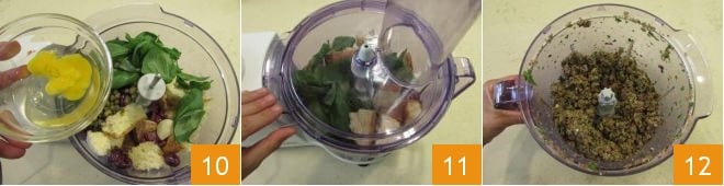 y por último, añade también el huevo 10. Tritura todo hasta obtener una mezcla homogénea y compacta 12. Añade al gusto un poco de pimienta molida. No será necesario añadir más sal a la mezcla ya que las alcaparras, las aceitunas y el pan ya son bastante salados.