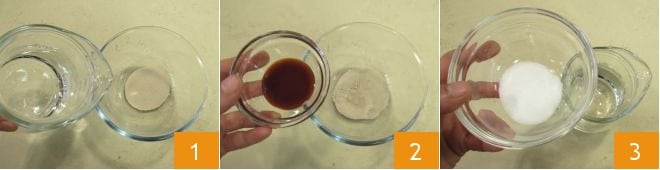 Para preparar la pita con hummus de tomates secos, primero prepara la masa para la pita: pon la levadura de cerveza seca en un pequeño bol (alternativamente puedes usar 9 g de levadura de cerveza fresca), añade un poco de agua tibia 1 y el malta (o el azúcar) 2, luego mezcla bien con una cucharita para disolver todo. Vierte el resto del agua tibia en otro recipiente, añade la sal 3