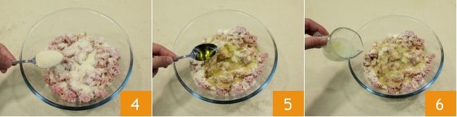 y el pan rallado 4, añadid también el aceite de oliva 5, el jugo de limón 6, salpimentad,