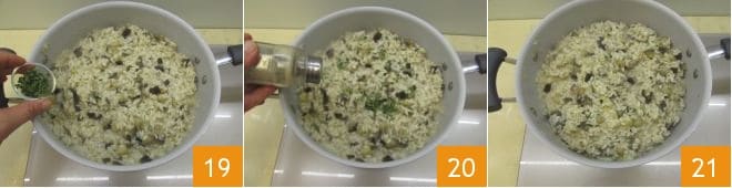 y añade el tomillo al risotto 19. Sazona con una pizca de pimienta negra 20 y sirve 21: ¡tu risotto con berenjenas está listo para ser disfrutado!