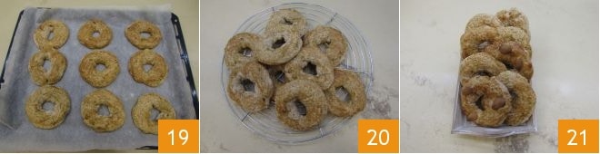Horneen en horno precalentado a 180° durante 25 minutos, hasta que estén ligeramente doradas 19. Antes de servir sus roccocò, déjenlos enfriar completamente sobre una rejilla 20. En este punto, sus roccocò estarán listos para ser disfrutados 21.