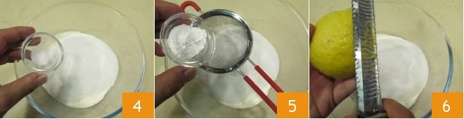 la sal 4 y la levadura tamizada 5. Aromatiza con la ralladura de limón teniendo cuidado de rallar solo la parte amarilla y no la blanca que resultaría amarga 6.