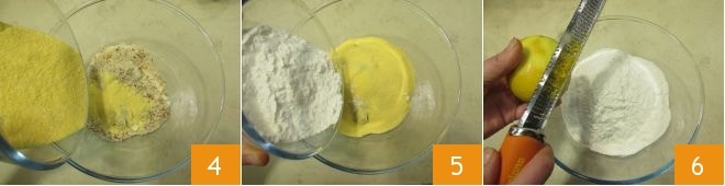 la harina de maíz fioretto 4 y la harina 00 5. Luego añade la ralladura de un limón 6,