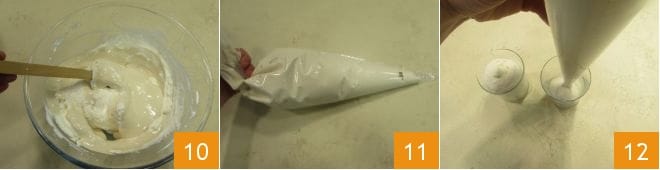 y mezcla nuevamente siempre de abajo hacia arriba 10. Tan pronto como obtengas una mezcla homogénea, transfiérela a una manga pastelera 11 y utilízala para llenar tus vasos;
