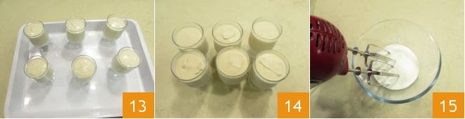 obtendrás 6 semifríos con estas dosis 13: deben ser trasladados al congelador durante al menos 5 horas. Al momento de servirlos, sácalos al menos 10 minutos antes 14. Monta nata fresca 15