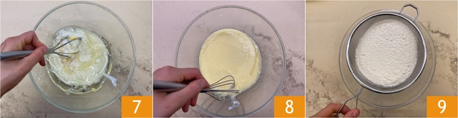 Mezcla 7 hasta obtener una mezcla homogénea 8. En otro bol tamiza la harina 9.