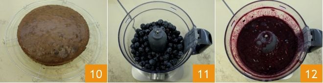 Luego desmoldadlo y dejadlo enfriar completamente sobre una rejilla 10. Ahora podéis dedicaros al relleno del zuccotto, el helado de uva fresa, cuya receta podéis consultar también aquí. Lavád las uvas de uva fresa bajo agua corriente, ponedlas en la licuadora 11 y trituradlas 12.